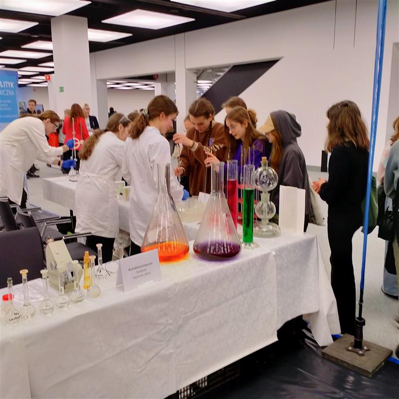 Dla uczniów szkół podstawowych z Poznania i okolic chemicy przygotowali szereg zadań. Uczniowie mogli samodzielnie przeprowadzić miareczkowanie, zbadać refraktometrycznie stężenie cukru, pokazaliśmy w jaki sposób oznacza się kolorymetrycznie chlorki, azotany, fosforany, amoniak w ciekach wodnych na podstawie przenośnych zestawów do oznaczania kolorymetrycznego; uczyliśmy uczniów jak pobierać ciecze pipetą. Stoisko cieszyło się dużym zainteresowaniem.