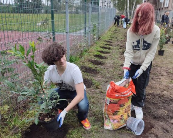 W dniu 12.10.2023r. na terenie naszej szkoły firma Karcher w ramach akcji charytatywnej zorganizowała dostawę i posadzenie 30 sadzonek krzewów