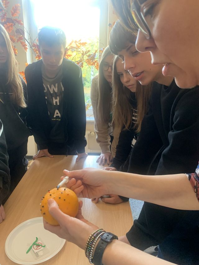 W dniu 31.10 oraz 10.11 klasy 1A1 i 2A razem z nauczycielkami: M. Bielak, J. Maćkowiak, J. Michalską oraz I. Ziółkowską wzięły udział w zajęciach organizowanych przez sanepid „Mały kleszcz – duży problem?”. Ze względu na gwałtowny wzrost liczebności kleszczy oraz zwiększenie się obszarów ich występowania (coraz częściej można je spotkać w miastach: parkach, skwerach, przydomowych ogródkach, a nawet w piwnicach i balkonach), bardzo ważna jest edukacja na ten temat. Podczas wykładu dr Agnieszka Dyk- Duszyńska omówiła biologię kleszczy, związane z nimi zagrożenia oraz profilaktykę chorób odkleszczowych. Po bardzo ciekawej i uspakajającej teorii, przeszliśmy do praktyki. Pracownicy sanepidu zapoznali nas z aktualnym sprzętem i technikami usuwania pajęczaka. Każdy miał okazję wypróbować: karty, lasso i kleszczołapki, wyjmując z pomarańczy różnej wielkości szpilki. Zgodnie stwierdziliśmy, że nie takie kleszcze straszne. Oczywiście, o ile zastosujemy się do poznanych zasad.