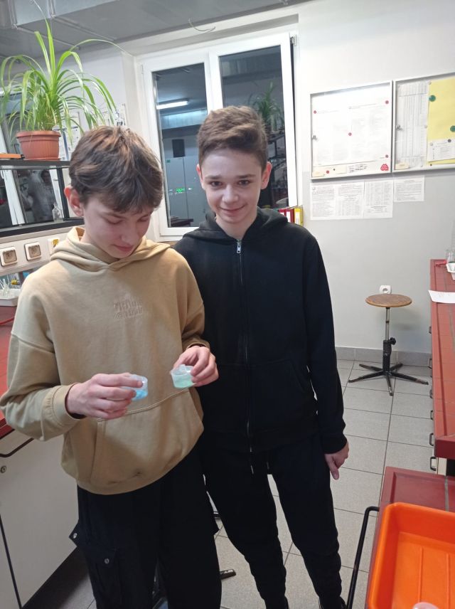 W międzyczasie, w laboratoriach szkolnych trwała „noc z chemią”, gdzie pasjonaci nauk przygotowywali ekscytujące doświadczenia chemiczne. Uczniowie nie tylko bawili się, ale też uczyli, eksplorując tajemnice zjawisk chemicznych podczas praktycznych eksperymentów. Niektórzy z nich odkrywali w sobie talent do nauk ścisłych, zachęceni przez niezwykłe możliwości, jakie daje eksperymentowanie. Dodatkowo młodzi chemicy brali udział w konkursach, których nagrody ufundowała nasza wspaniała Rada Rodziców.