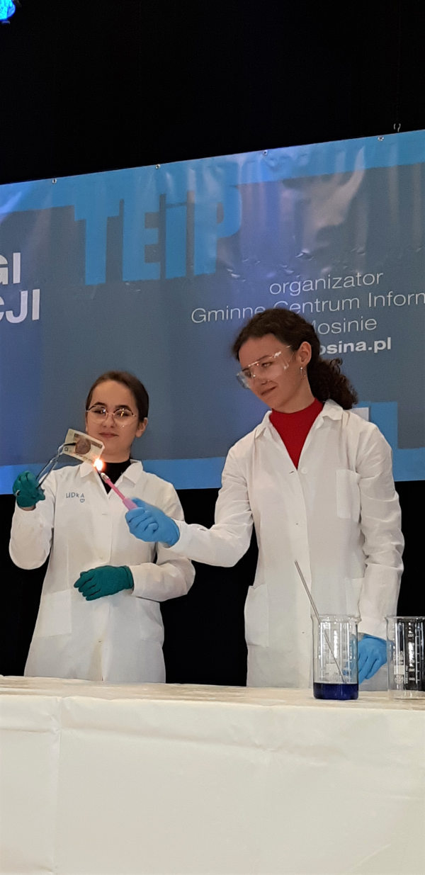 Ciekawe doświadczenia na scenie zaprezentowały uczennice z klasy 1PA.