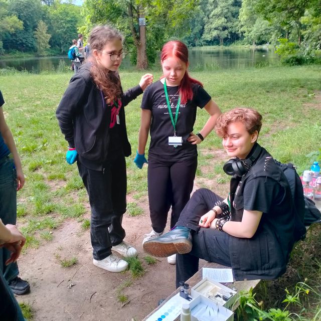 W poniedziałek, 27 maja klasa 1A1 i we wtorek, 28 maja klasa 1A2 odbyły zajęcia edukacyjne z badań środowiska w terenie. Uczniowie pobierali próbki wody powierzchniowej oraz mierzyli jej parametry fizykochemiczne. Pobrali również próbkę gleby, którą przetransportowali do pracowni laboratoryjnej w szkole, gdzie wykonali badania sorpcyjne gleby. Uczniowie wykonali także w wybranych miejscach pomiary hałasu.